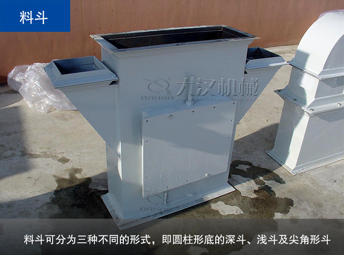 提升機的盛料構(gòu)件,根據(jù)運送物料的性質(zhì)和提升機的結(jié)構(gòu)特點,料斗可分為三種不同的形式,即圓柱形底的深斗、淺斗及尖角形斗。深斗適合于松散物料,淺斗適合輸送粘性較大的物料,三角斗適合比重大且成塊狀的物料。