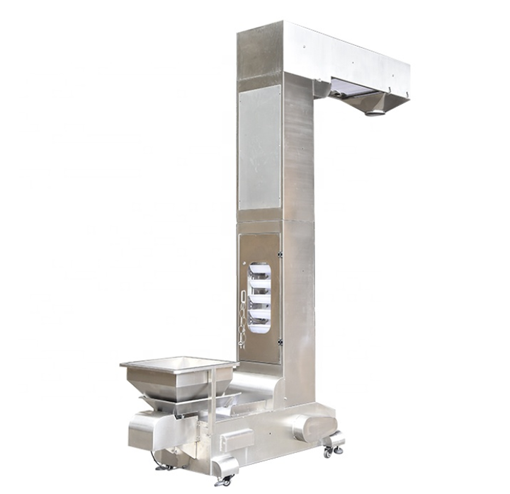 液體填充袋Z型輸送機主要有皮帶式和鏈條式兩種類型,皮帶式傾斜角一般不超過60°,鏈條式可以進行垂直輸送液體填充袋。